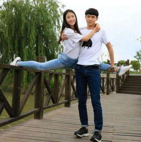 有這種會一字馬的大學生女朋友,真的是福利大大滴有啊。