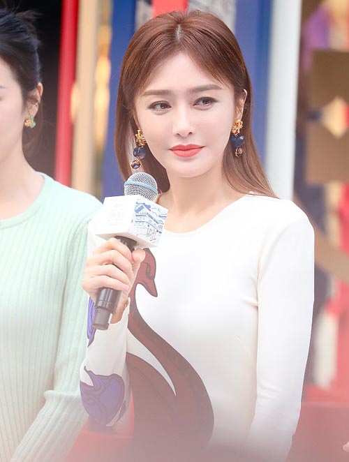 秦嵐水墨風緊身長裙秀曲線,女人味十足