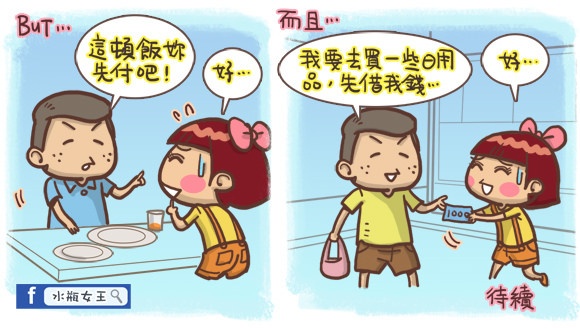男友常常耍賴要女友先付錢,之后當然也裝傻沒有還。甚至自己要用的生活用品,也厚著臉皮要女友幫忙買 (好會算),吃吃喝喝有人買單,簡直爽得要命呀!除了男友幫忙花錢之外,妹子后來還遇到更傻眼滴事件。敬請期待下集。水瓶女王 VS老公仔