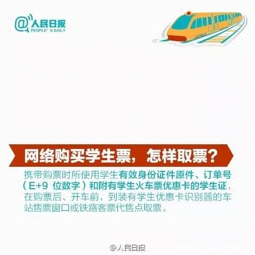③網(wǎng)絡(luò)購票后,帶身份證、訂單號和附優(yōu)惠卡學(xué)生證到車站或代售點取票。