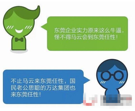 小文問,“你知道2014年中國首富是誰嗎?”阿強答,“反正不是我,是馬云!”于是,小文又開始描述起2014年12月18日馬云到訪東莞的事跡,自豪地介紹菜鳥網絡布局東莞的大計劃。小文說,“馬云之所以來東莞合作,想必是與我們東莞企業非常爭氣有關!”對家鄉的驕傲油然而生。