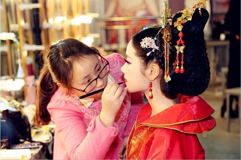 紅色唐裝,金色配飾,精致大氣的唐風妝容,這一個高校版的“武媚娘”,堪稱為最“雍容華貴”的期末考答卷了。