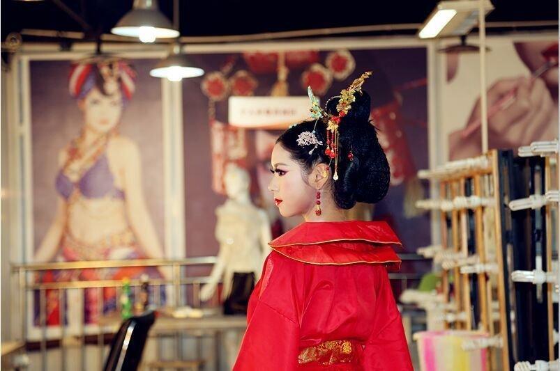 臨近交答卷的時(shí)間了,酷愛熱播劇《武媚娘傳奇》的謝箐,靈光一閃,干脆做一套武媚娘的古裝造型吧。她先從網(wǎng)上找到《武媚娘傳奇》中一張劇照,正是武媚娘重返后宮、勢力大增之時(shí)的造型。一襲紅袍和高發(fā)髻、金色配飾,展現(xiàn)女主武則天的霸氣。