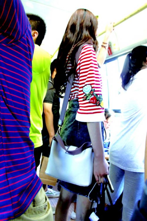 車展結束,孫瑜拎著大包小包坐公交車回學校。