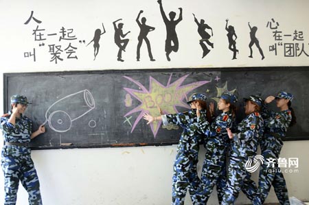 聊城大學(xué)生拍創(chuàng)意照片, “玩轉(zhuǎn)”軍訓(xùn)