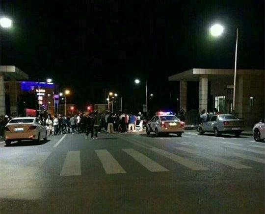 9月27日晚間,大連外國語大學女生晚上回學校時,在校內遇到一輛私家車開車尾隨,車內男子語言輕佻,出言不遜,對女生造成騷擾。幾名女生在社交網絡發布了信息,于是同校男生發朋友圈召集自愿者。很快,有數十名男生來到學校東門,包圍了這輛私家車,并且報警。圖為該校男生趕至包圍涉事私家車。