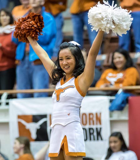 2017年10月30日訊,美國奧斯汀,美國大學生女排聯(lián)賽德克薩斯大學VS西弗吉尼亞大學,拉拉隊活力十足洋溢飛揚青春。