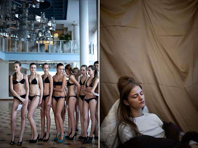 一個擺POSE的年輕的女孩配合攝像師拍攝