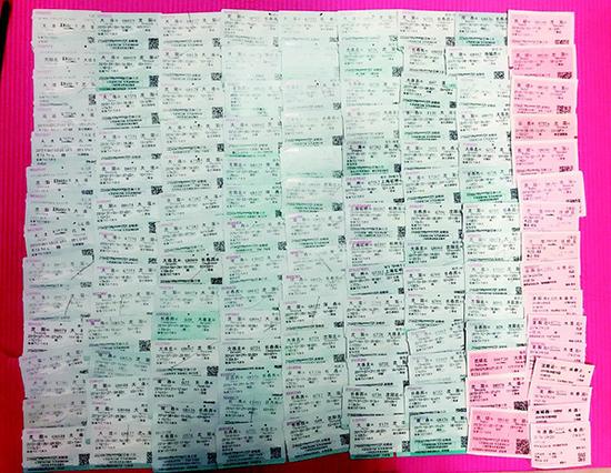 龐曉萌說,她曬出了140余張火車票,是他們戀愛3年的見證。其中,約有50張車票是彼此異地期間去看望對方時留下的。異地期間,兩人每個月能見一次面。為了省錢,她經常購買從大連到沈陽的學生票,然后補票到長春。?