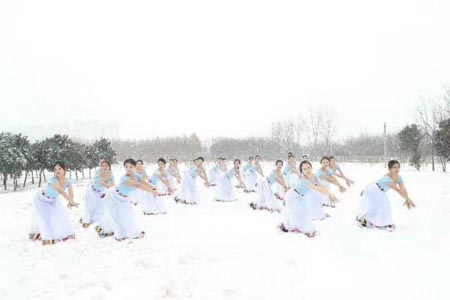 美女大學生雪天穿單衣熱舞 不怕凍只要美