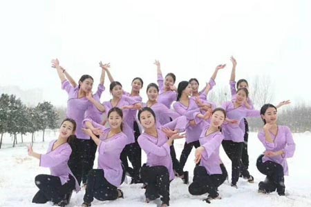 美女大學(xué)生雪天穿單衣熱舞 不怕凍只要美