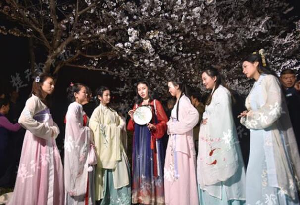 40多名武漢大學生穿漢服夜賞櫻花