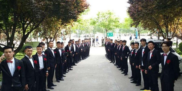 近日,西安航空職業技術學院“婚禮”畢業照引發網友關注。據了解,這組拍“婚禮”畢業照的班級是該校航空維修工程學院飛機機電設備維修專業2016級3班。為了給班里唯一的女生和所有的同學留一份美好的大學回憶,班長韓小康和男生經過三天時間的策劃和準備,完成了這組“別具特色”的畢業照。