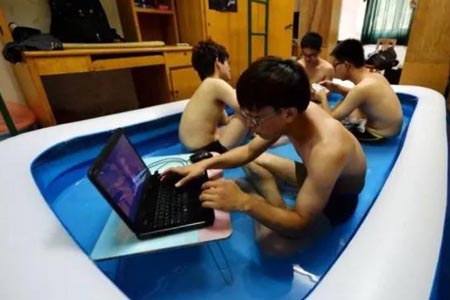 而一些年輕人在房間里擺出了大木桶只要足夠佛系地在水中靜坐「心靜自然涼」絕不是說說而已