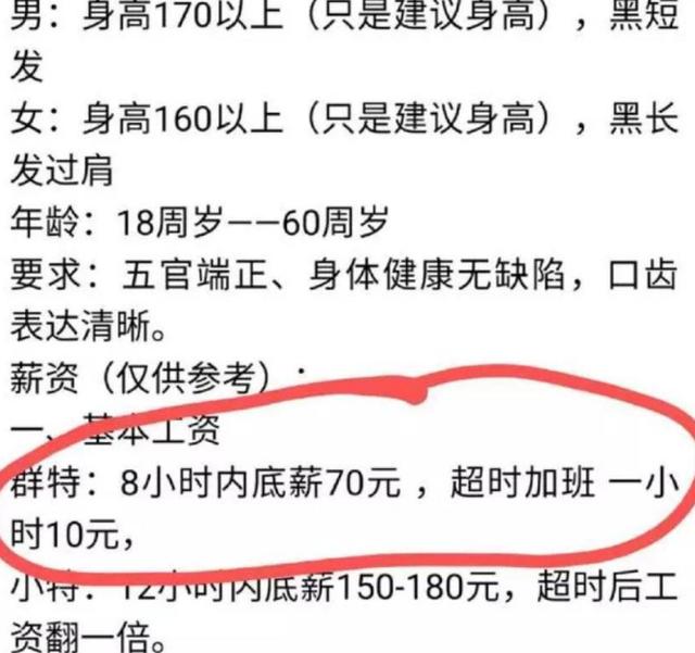 雖然薪資不高,但是他們對于要求可是很高的呢,據說男生身高最少要在1.7米以上,而女生的身高要在1.6以上,并且還要有著過肩的長發。而且更令大家想不到的是這樣的薪資在這個行業中已經算是很高的了,據說前段時間有一位女大學生在畢業之后因為一直找不到合適的工作,所以想到了去當群演,一來是可以賺錢,二來或許還能被選中,以后當個演員也說不定呢。本來以為形象氣質都比較好,拿到的待遇應該也是比較高的,但是試戲之后卻只能拿到十多塊一個小時的價格,平均算下來,一天的工資還不到一百塊錢呢!
