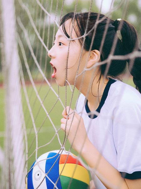 校園美女大學(xué)生白色運動校服美女圖片