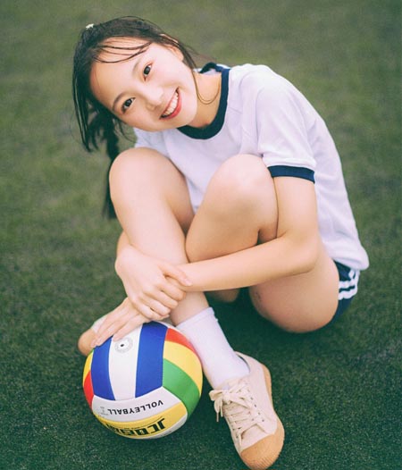 校園美女大學生白色運動校服美女圖片