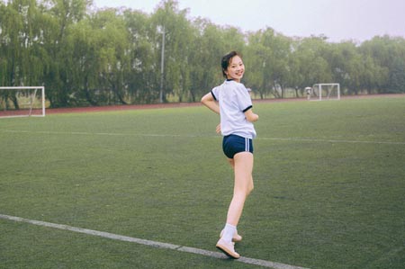校園美女大學(xué)生白色運(yùn)動(dòng)校服美女圖片