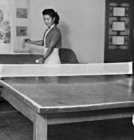 燕京大學女生在宿舍公共活動室內打乒乓球。當時的北京(時稱北平)正處于日軍的統治之下,北京大學、清華大學等早已遷入抗戰后方。因為燕京大學是有英美背景的教會大學,日軍暫時不敢惹,它得以保持寧靜,繼續辦下去。