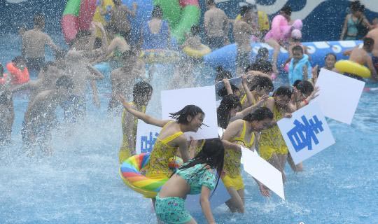 重慶高溫天氣,中考畢業生水中拍攝個性畢業照