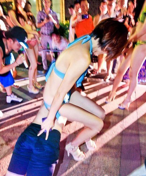 豪華酒店泳池派對,肌肉男與美女做俯臥撐