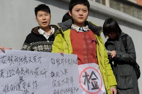 大學(xué)生行為藝術(shù)呼吁公務(wù)員考試不做婦檢