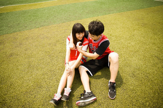 大學生情侶籃球場親密照秀恩愛