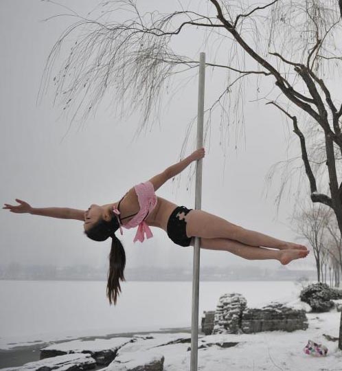 中國鋼管舞國家隊(duì)隊(duì)員公園內(nèi)繡技藝