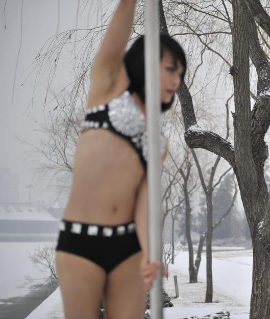 中國鋼管舞國家隊隊員公園內繡技藝
