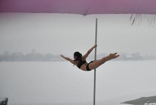 中國鋼管舞國家隊隊員公園內(nèi)繡技藝