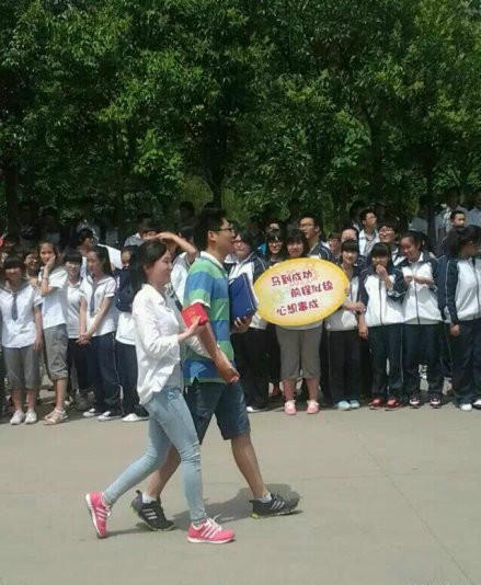 高三情侶告別地下情,高調步出考場