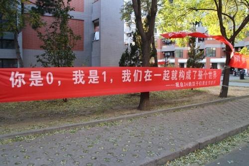 清華女生掛橫幅表心意,給大學生活增添色彩