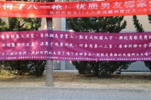 清華女生掛橫幅表心意,給大學生活增添色彩