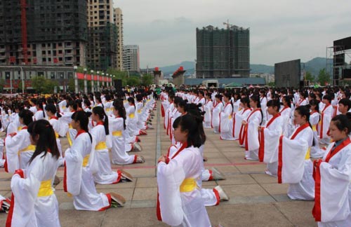 湖南千名少女穿漢服參加成人禮,體驗(yàn)成人大典
