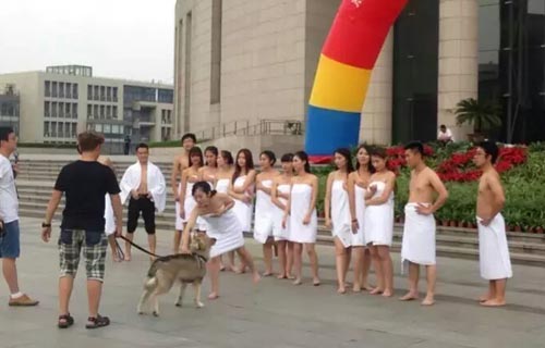 中國礦業大學學生裹浴巾拍攝畢業照