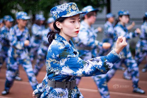南京藝術(shù)學院新生軍訓萌妹子迷彩服展現(xiàn)靚麗青春