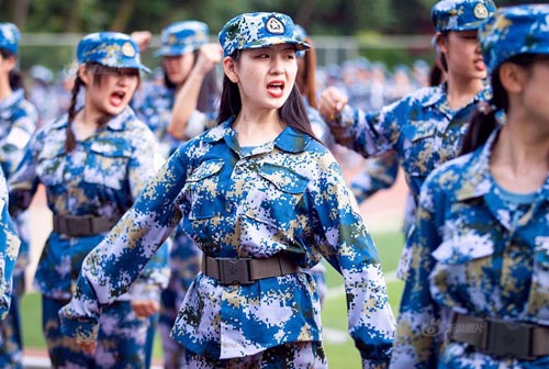南京藝術學院新生軍訓萌妹子迷彩服展現靚麗青春