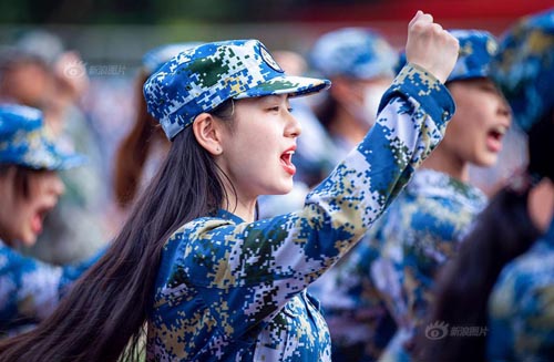 南京藝術(shù)學(xué)院新生軍訓(xùn)萌妹子迷彩服展現(xiàn)靚麗青春