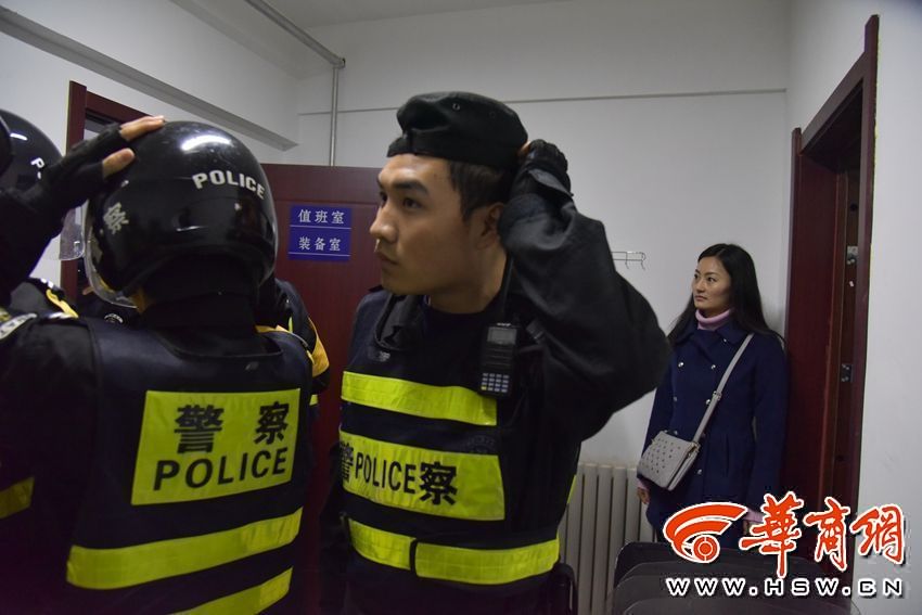 【19:50】特勤中隊要求隊員們在夜間巡邏必須全副武裝,著防刺服防爆頭盔,看著特勤隊員穿上厚厚的裝備,徐婷的眼睛里投來敬仰的目光。