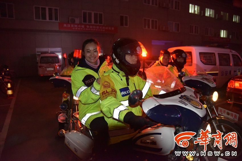 【20:00】巡邏隊(duì)準(zhǔn)備出發(fā),特勤中隊(duì)還為兩名大學(xué)生準(zhǔn)備了警用騎行服,第一次身著警服,讓徐婷開心的合不攏嘴,后來她告訴記者,在她心里有一個當(dāng)特警的夢想。