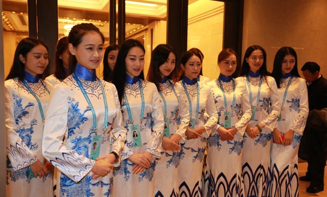 美女大學生穿青花瓷旗袍亮相互聯網大會