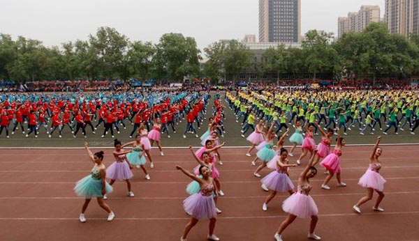 從2012年起,陜師大運動會開幕式上總少不了一個重頭節目——千人啦啦操表演。同學們在表演中舞動了青春,展現了當代大學生積極向上的精神面貌。今年的千人活力操場舞和往年相比又有了新的亮點,不僅改變了選曲的曲風——以歌曲《美麗中國走起來》為主旋律,還加入了隊形變換和更高難度的舞蹈動作。此外,還迎合了“一帶一路”的時代背景,表達了莘莘學子對祖國發展的美好祝愿。這場運動的盛宴,因為有了千人活力操場舞,所以有了別樣的韻味與新意。