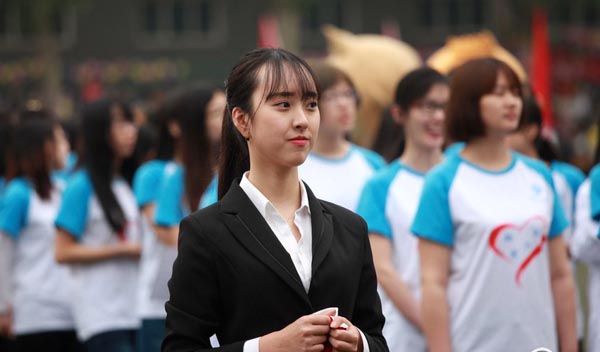 音樂一開始,操場中央的男生們就開始旋轉(zhuǎn)著入場,他們打著太極,出拳有力。接著女孩們便從“光束”的隊形變?yōu)榫匦危_始和著《美麗中國走起來》舞蹈起來。短短幾分鐘的表演有著無限的活力,陽光似乎變得和音樂一樣有韻律,跳躍在同學(xué)們的臉上,在眼眸里熠熠閃光。