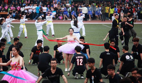 西安千余大學(xué)生齊跳啦啦操 顏值爆表