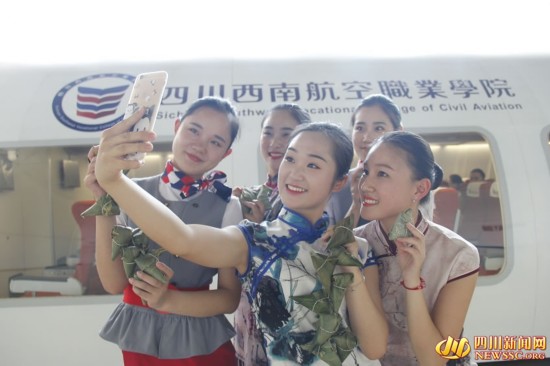 大學(xué)美女準(zhǔn)空姐穿旗袍跟食堂阿姨學(xué)包粽子