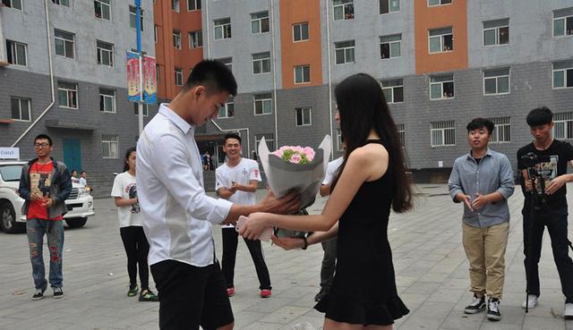 這位男生展示自己的舞技,舞蹈至半,該男生徑直走到一名漂亮女生面前牽起她的手,開始求愛表白。