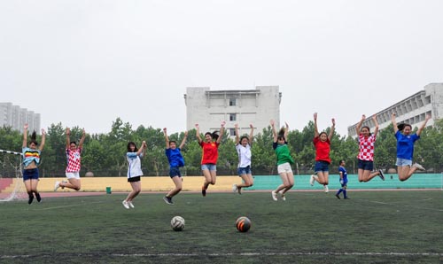 女大學生助力歐洲杯 穿球衣青春靚麗
