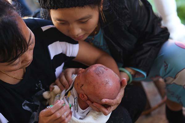 羅藝14歲,她跟18歲的丈夫陶濤已有了孩子,圖為羅藝抱著他們剛滿月的孩子。