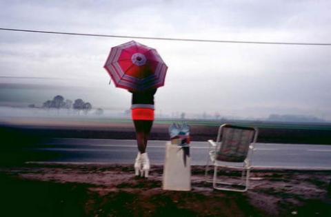 陰冷的冬日里,一名尼日利亞女性撐著雨傘在路邊等客人。貧窮讓她們踏上了這條不歸路。