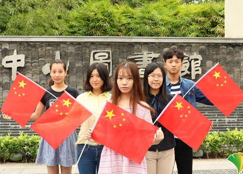 中山圖書(shū)館下,重慶理工大學(xué)的學(xué)子把旗幟放在胸前拍下合影,"我們應(yīng)該用心聆聽(tīng)國(guó)家強(qiáng)而有力的心跳聲,這聲音能讓當(dāng)代大學(xué)生感受到祖國(guó)的力量。"